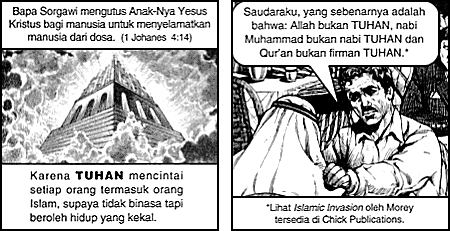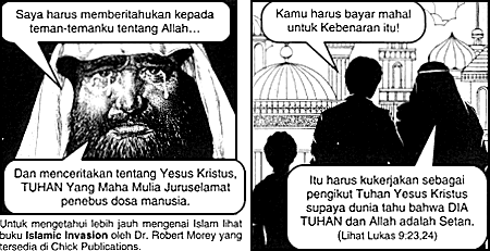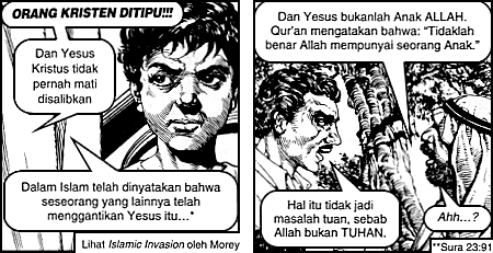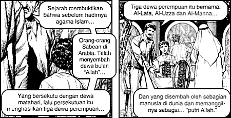 Kartun yang Menyesatkan Umat Islam Muslimah & Media - Sunday, 18 July 2004 Kafemuslimah.com Pembaca sekalian, berhati-hatilah dengan merebaknya tulisan-tulisan maunpun kartun-kartun yang menyimpang dari ajaran islam. Berikut kami tampilkan contoh kartun menyesatkan tersebut.